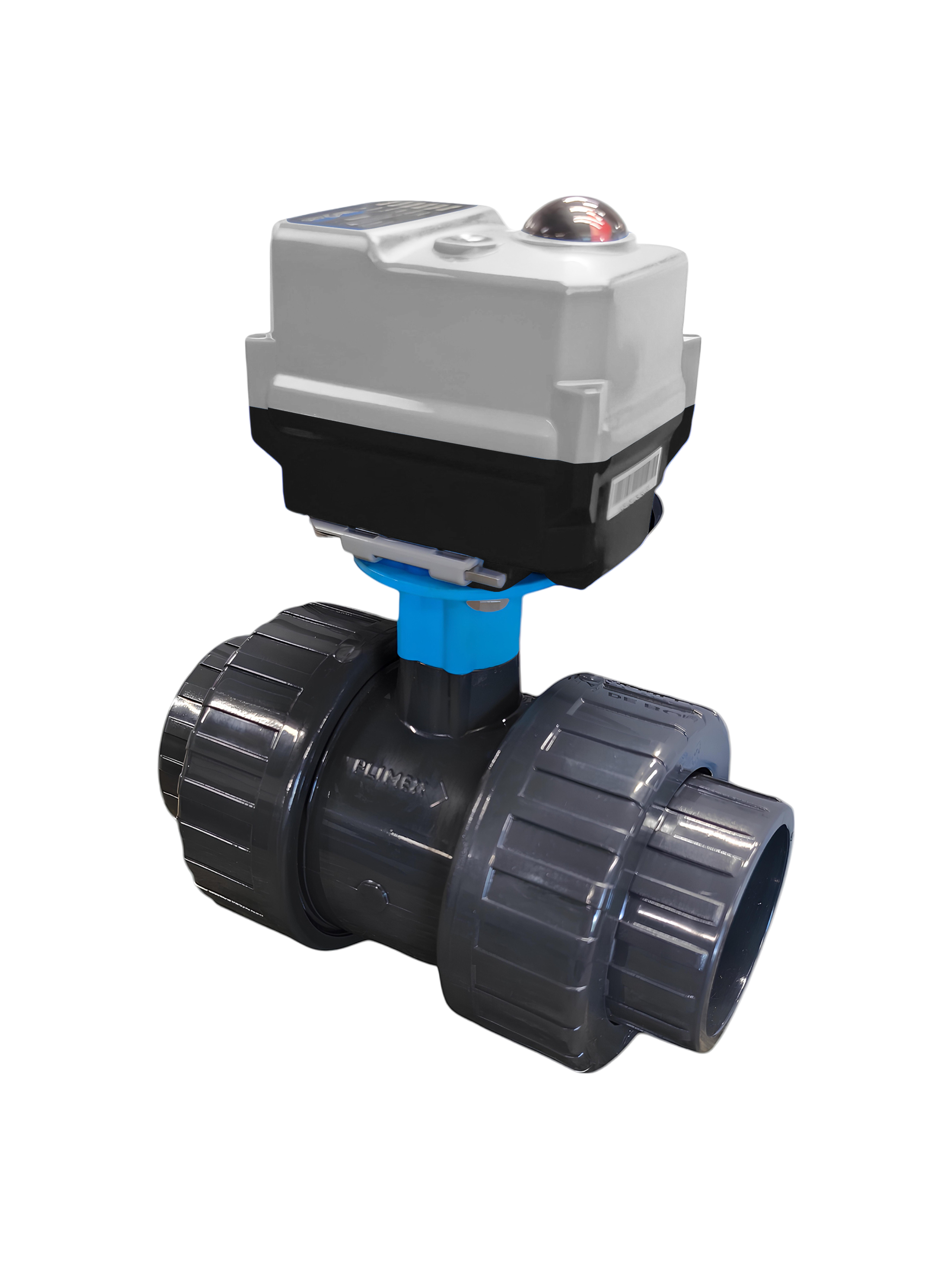 Vanne à coller PVC + Actionneur Elec. 230V avec contrôle posi 4-20mA ou 0-1
